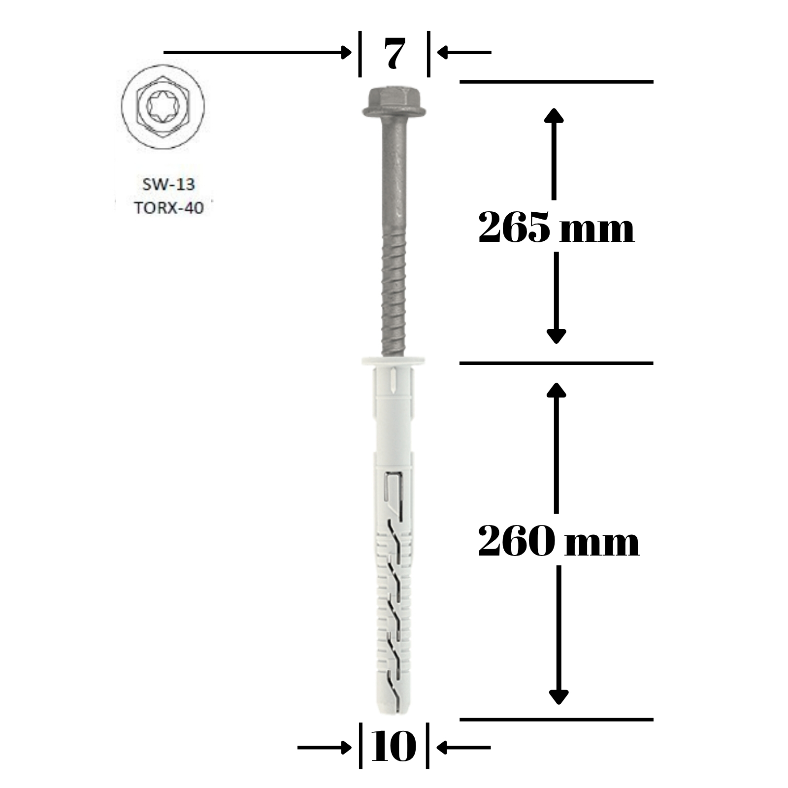 Diblu cu Surub, cap hexagonal si mufa TX40,10x260/7x265mm - 25 bucati/cutie - KPR-FAST-10260K, Klimas Wkret-met