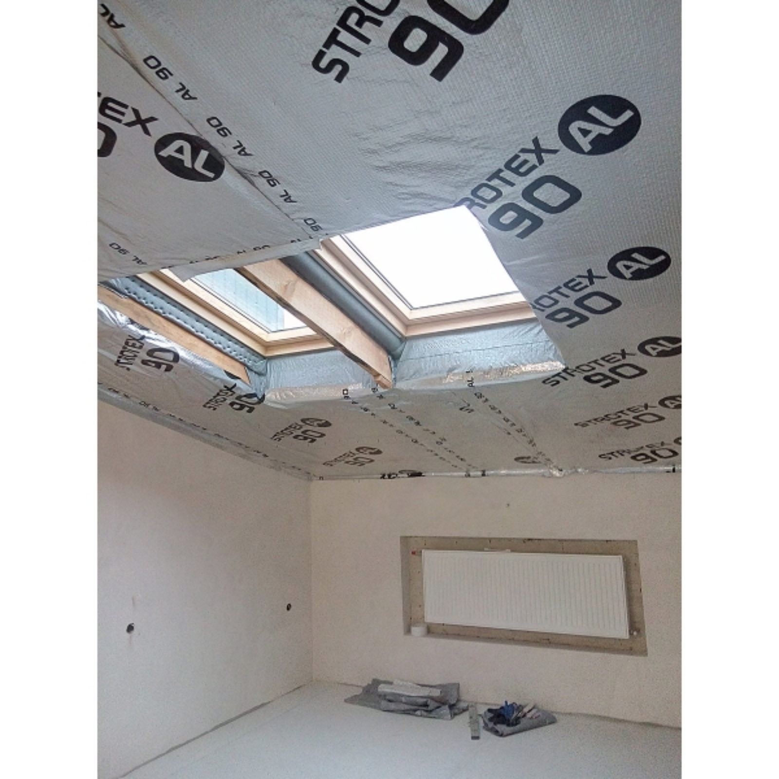 Folia bariera de vapori Strotex AL 90 este destinata realizarii unei bariere de vapori intre interior si structura acoperisului. Stratul metalizat reflecta caldura radianta, impiedicand pierdera de caldura. Produsul actioneaza ca bariera de vapor si de vant.