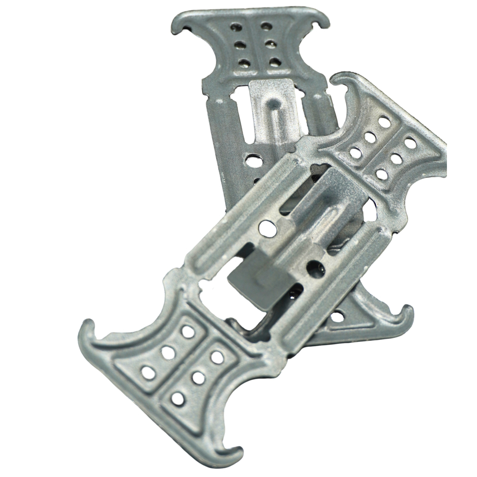 Designul inovator include o amprentă ambutisată, ce asigură rigidizarea și stabilitatea componentelor în timpul utilizării, prevenind deformările nedorite. În plus, piesa este echipată cu cleme de fixare robuste, care garantează o poziționare exactă și sigură a profilurilor în timpul procesului de montaj, asigurând astfel o structură solidă și durabilă.
