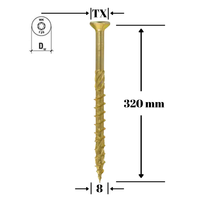 Surub pentru lemn TORX 8x360mm - WKCS-08360(50), Wrek-met KLIMAS