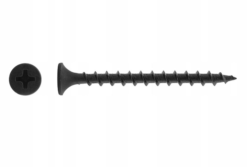 Negrese lemn cu cap inecat, tratate termic, polifosfatate. Spiralele de pe vârf vă permit să „prindeți” lemnul mai repede. Acest avantaj este deosebit de important în cazul conexiunilor în care strângerea șurubului este dificilă. Filetul ascutit înseamnă că obținem același efect cu o forță de strângere mult mai mică. Forma vârfului reduce rezistența la înșurubare cu până la 20%. Acest parametru este deosebit de important pentru acei specialiști care folosesc zilnic unelte fără fir – prelungește durata de viață a bateriei.