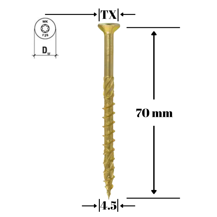 Surub pentru lemn TORX 4x70mm - KMWHT-40070(200), Wrek-met KLIMAS