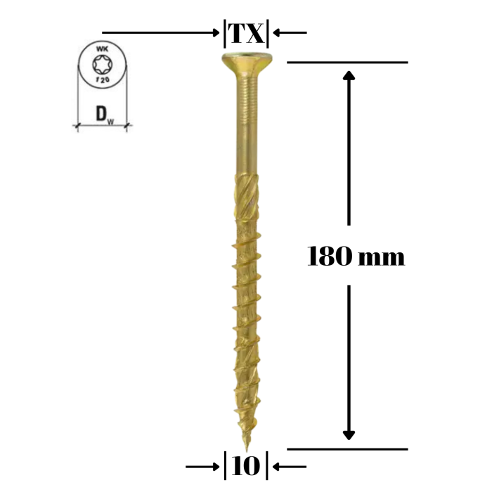 Surub pentru lemn TORX 10x180mm, 25 buc/cutie - WKCS-10180(25), Klimas Wkret-met